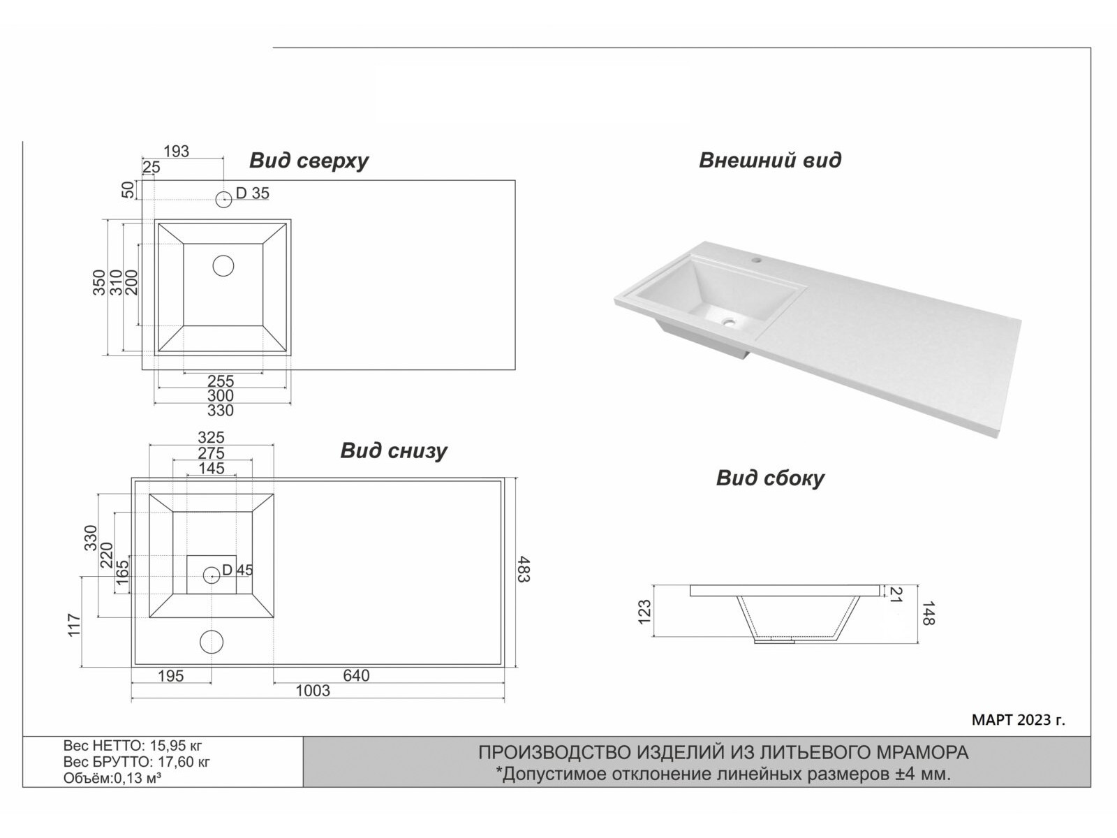- Тумба Куба Риф 57 подвесная 2 ящика раковина под Marshall 120 левая