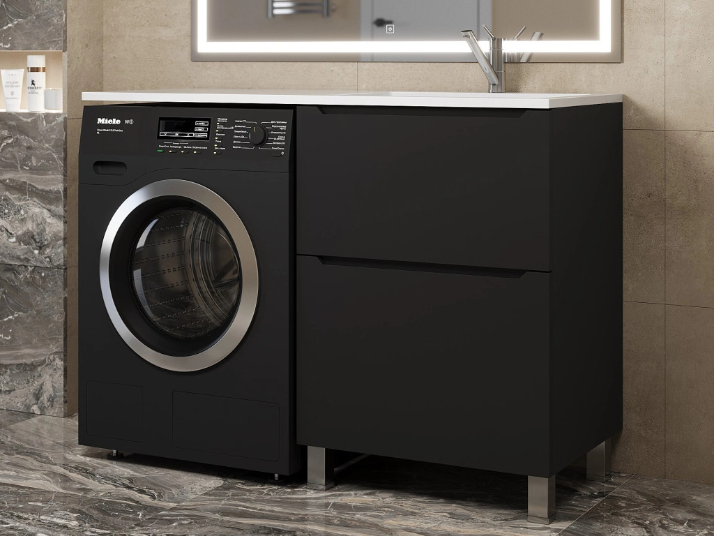 - Тумба под стиральную машину Uperwood Tanos 60 см, напольная, 2 ящика, черная