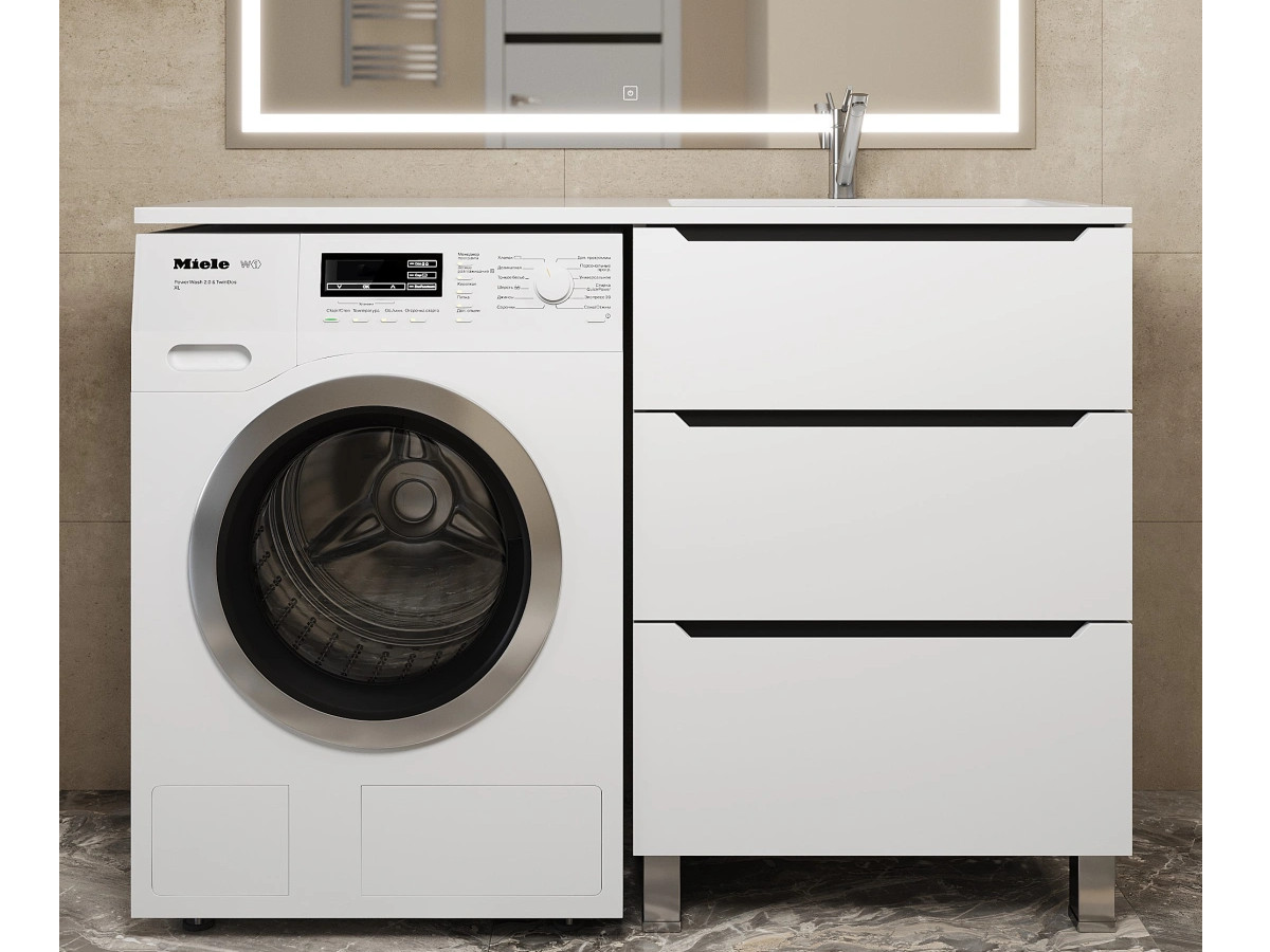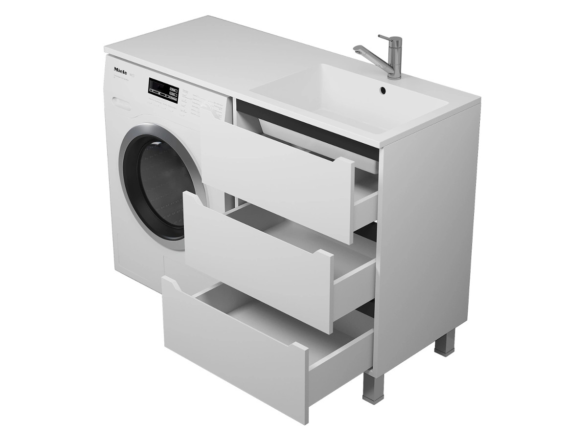 - Тумба под стиральную машину Uperwood Tanos 60 см, напольная, 3 ящика, белая/графит