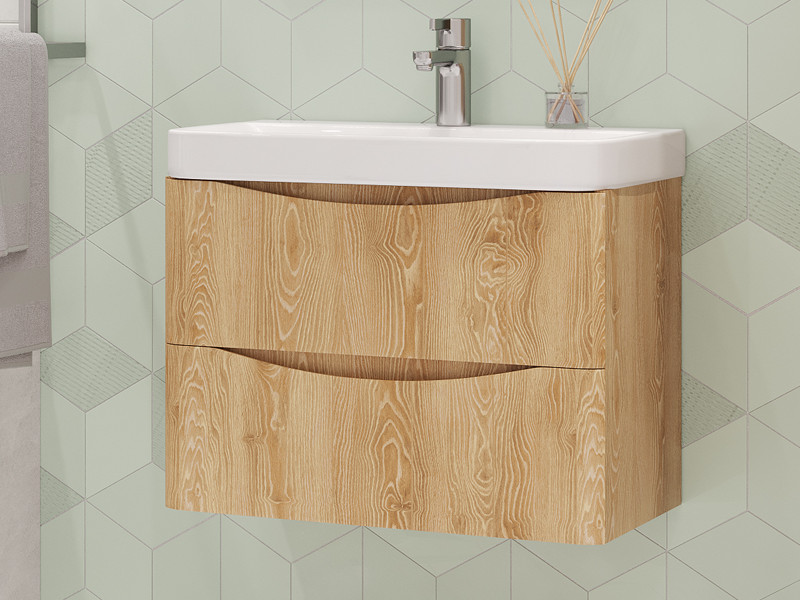 - Тумба с раковиной Clay 70 подвесная дуб верона