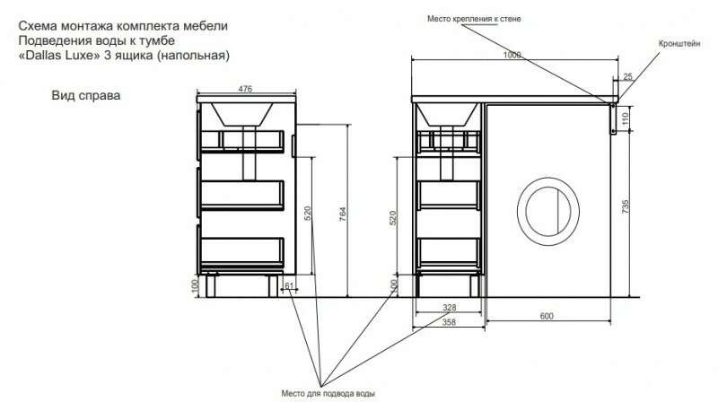 Размер ШхГхВ: 358/1000х476х885 мм