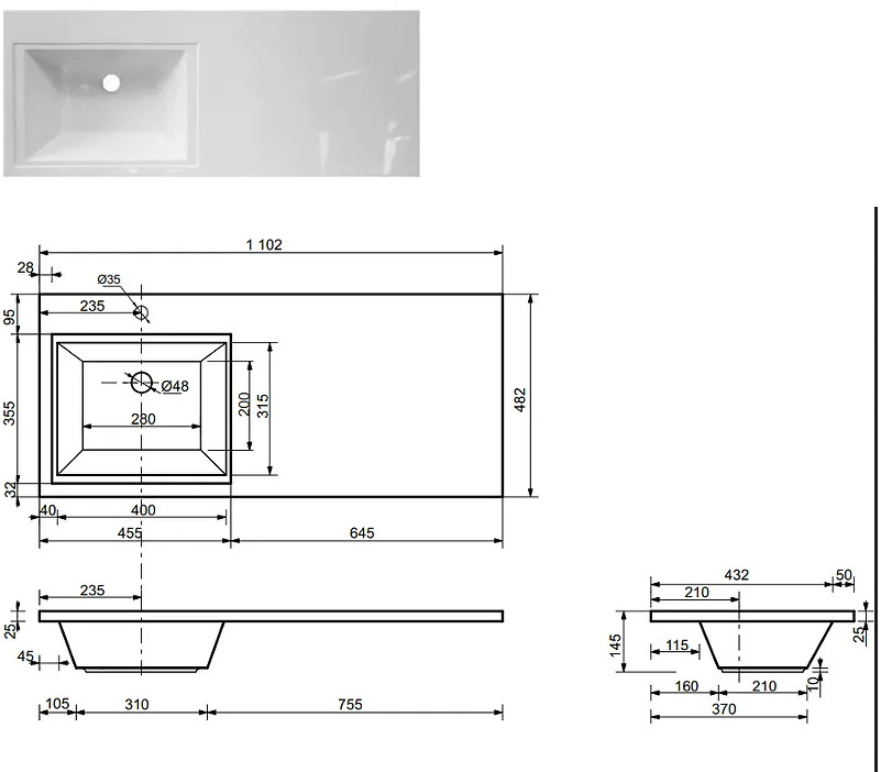 - Тумба с раковиной Dallas Luxe 1100 напольная 2 ящика левая