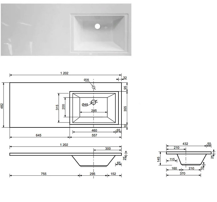- Тумба с раковиной Dallas Luxe 1200 навесная 2 ящика правая
