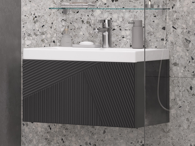 Материалы тумбы: МДФ, влагостойкая ЛДСП, полимерное покрытие ПВХ, врезная ручка, европейская фурнитура