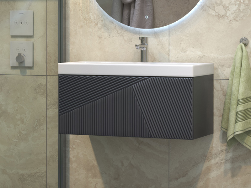 Материалы тумбы: МДФ, влагостойкая ЛДСП, полимерное покрытие ПВХ, врезная ручка, европейская фурнитура