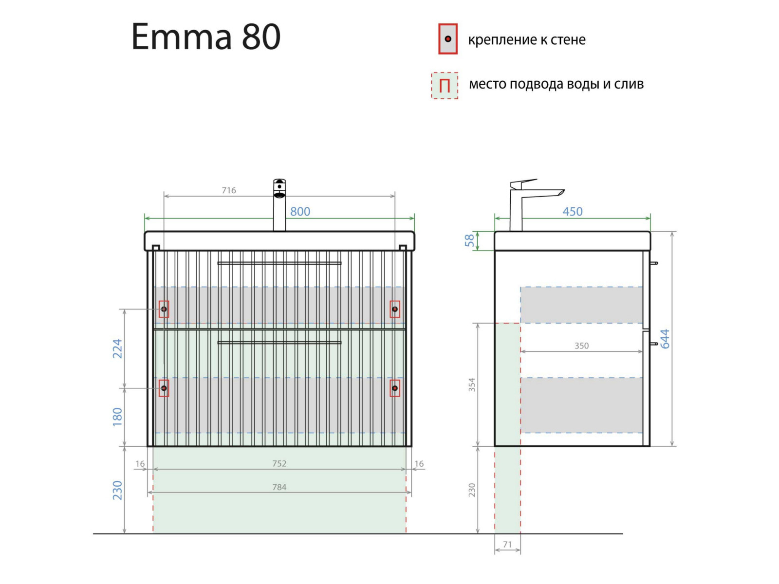- Тумба с раковиной Emma 80 Умывальник Como 80