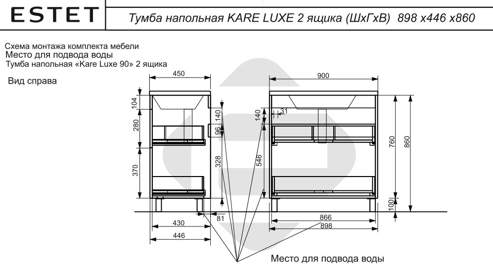 - Тумба с раковиной Kare Luxe 900 напольная 2 ящика
