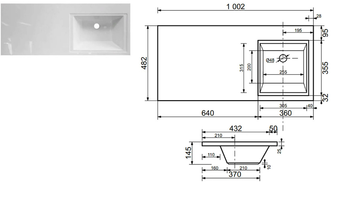 - Тумба с раковиной справа Dallas Luxe 1000 навесная 1 длинный ящик