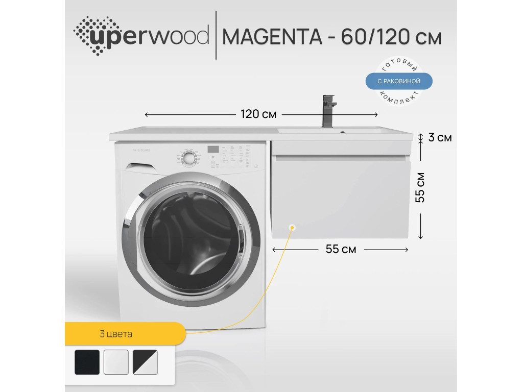 - Тумба с раковиной Uperwood Magenta 60-120 см подвесная белая выдвижной ящик правая