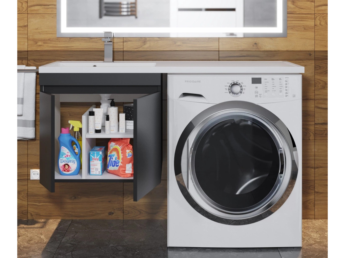 - Тумба с раковиной Uperwood Magenta 60-120 см подвесная черная с дверцами левая