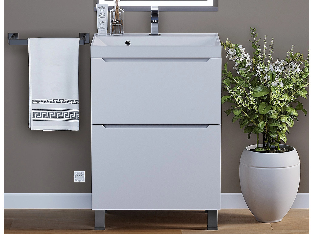 - Тумба с раковиной Uperwood Tanos 2 ящика напольная 60 см белая