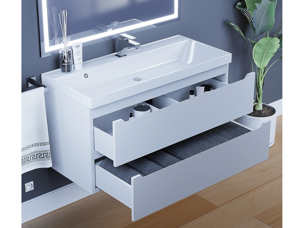 Тумба с раковиной Uperwood Tanos матовая белая 100 см