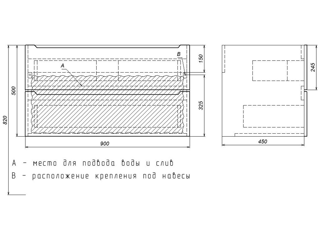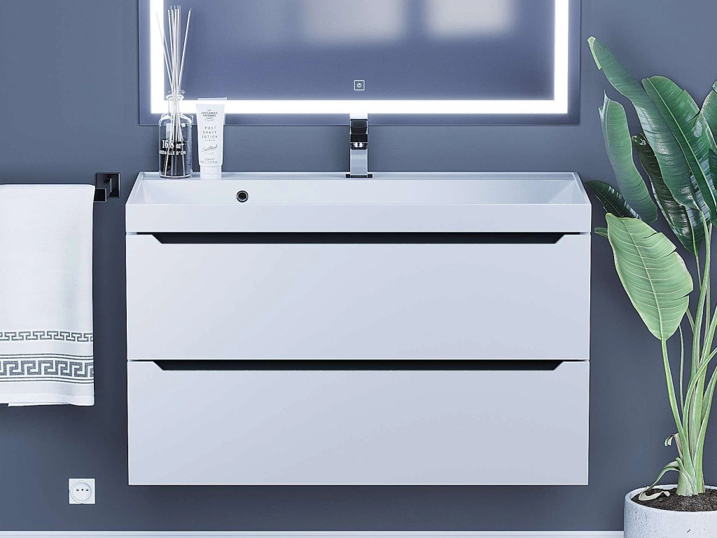 - Тумба с раковиной Uperwood Tanos матовая белая/графит 90 см