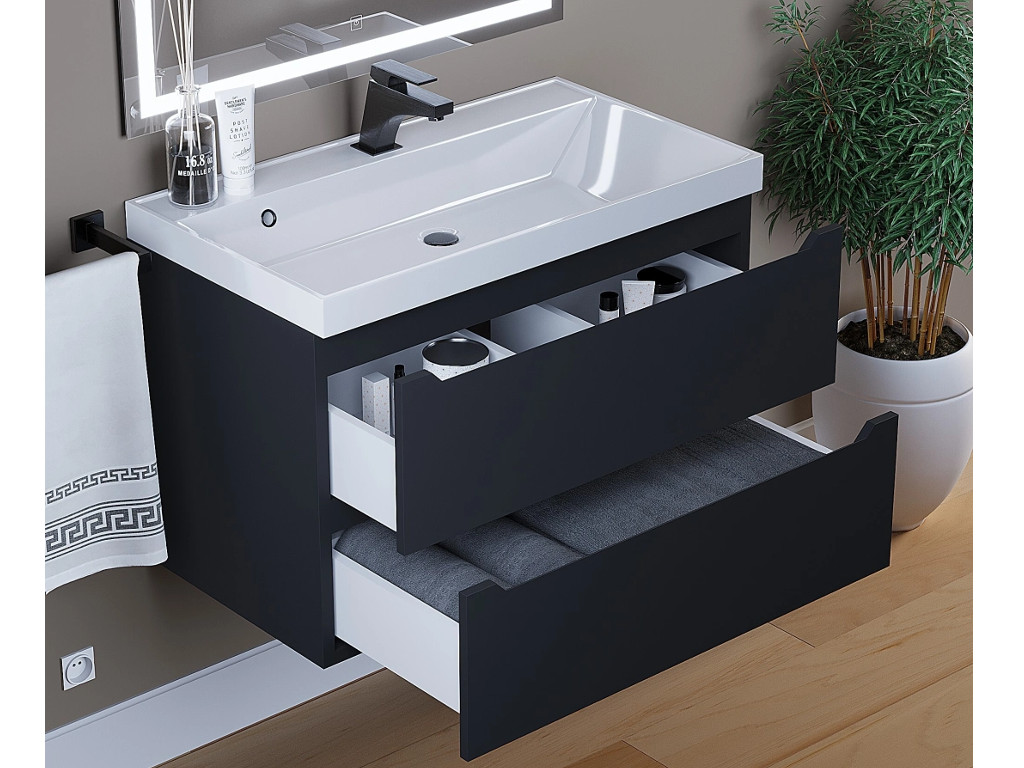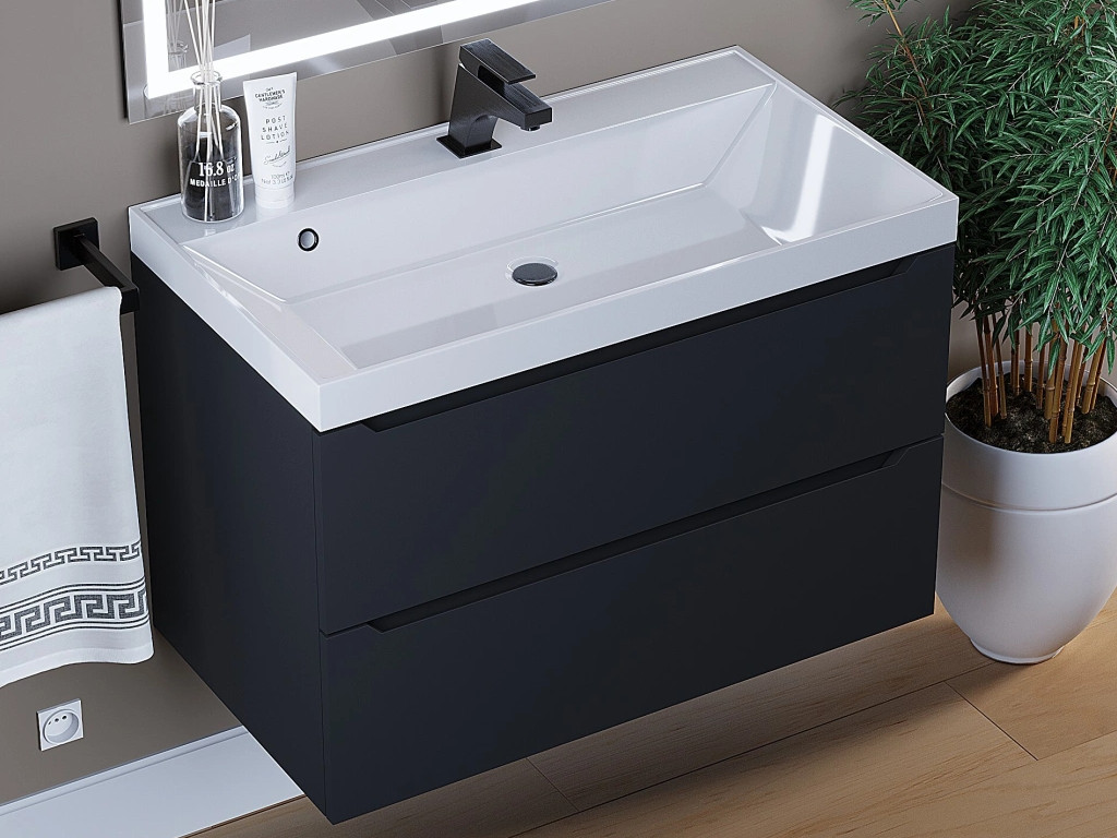 - Тумба с раковиной Uperwood Tanos матовая черная 80 см