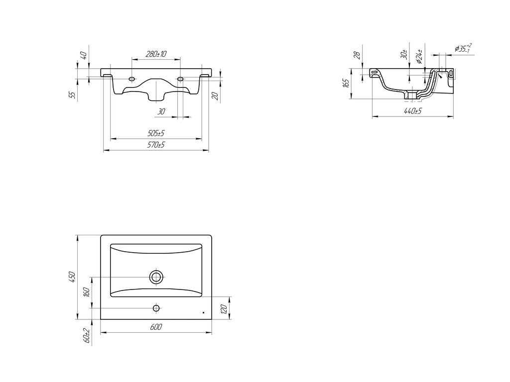 - Тумба Куба Риф 60 напольная 2 ящика раковина Como 60