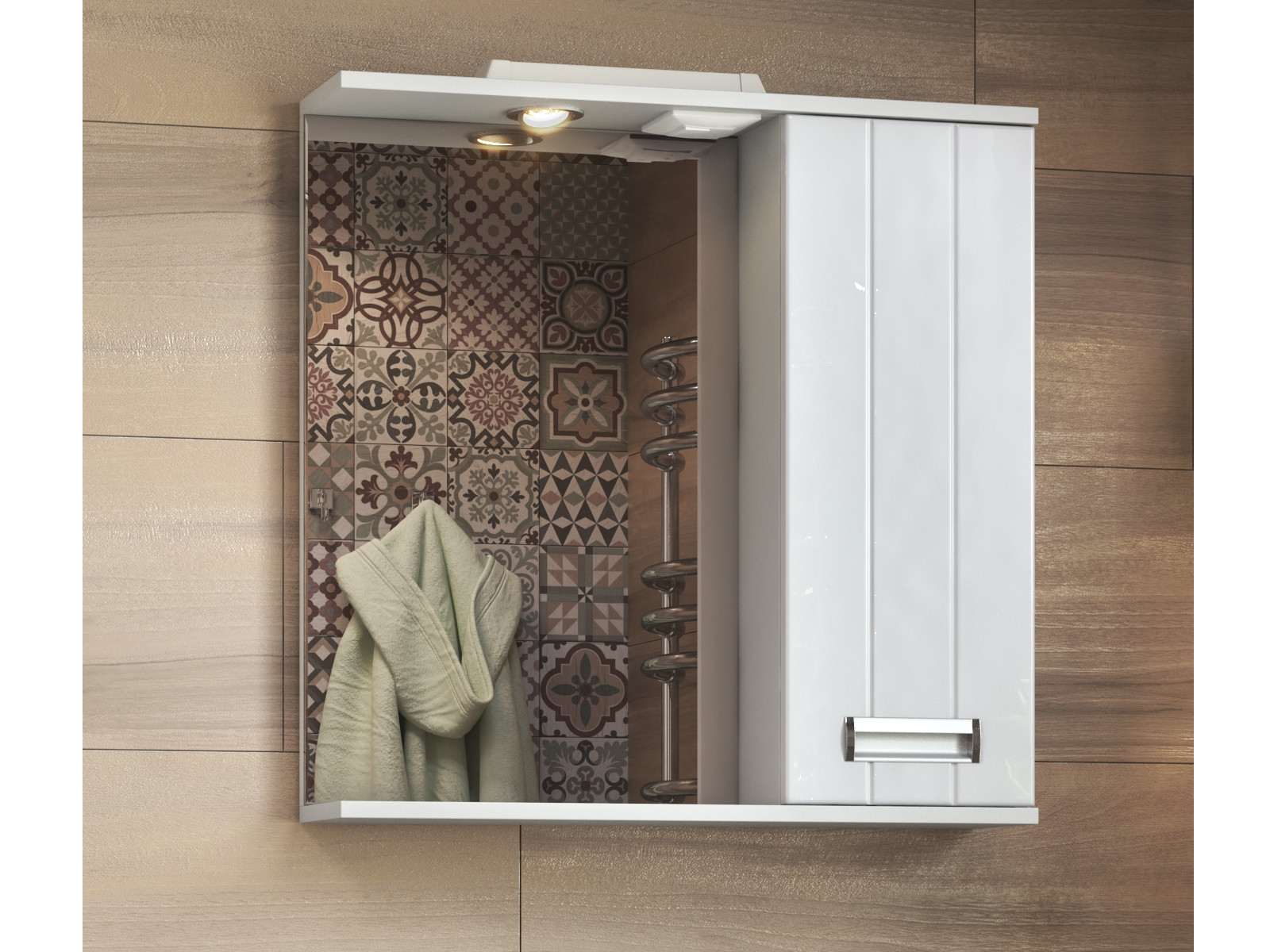Оснащение: 1 дверца; 2 полки ЛДСП, 1 светодиодный светильник, включатель с розеткой; ручка врезная металлическая хромированная.