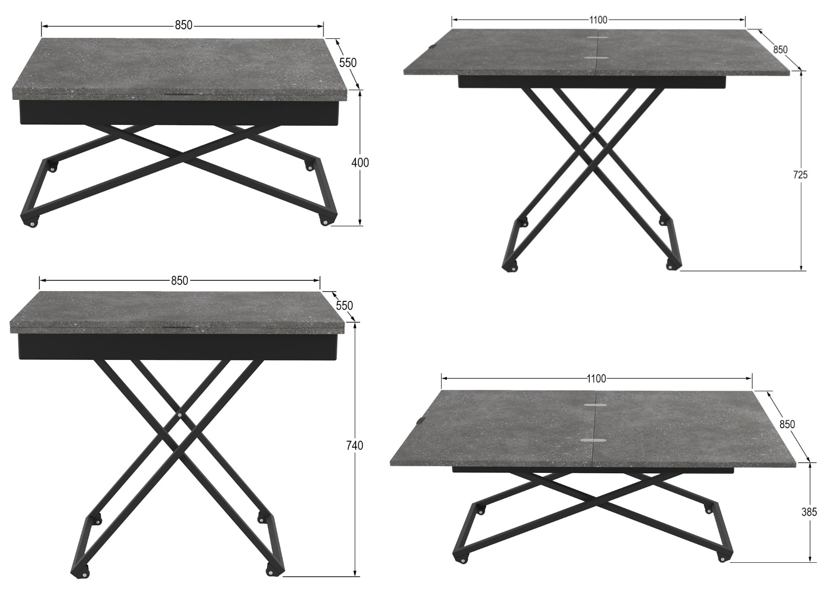 По высоте стол имеет два положения: 400 мм и 725 мм.