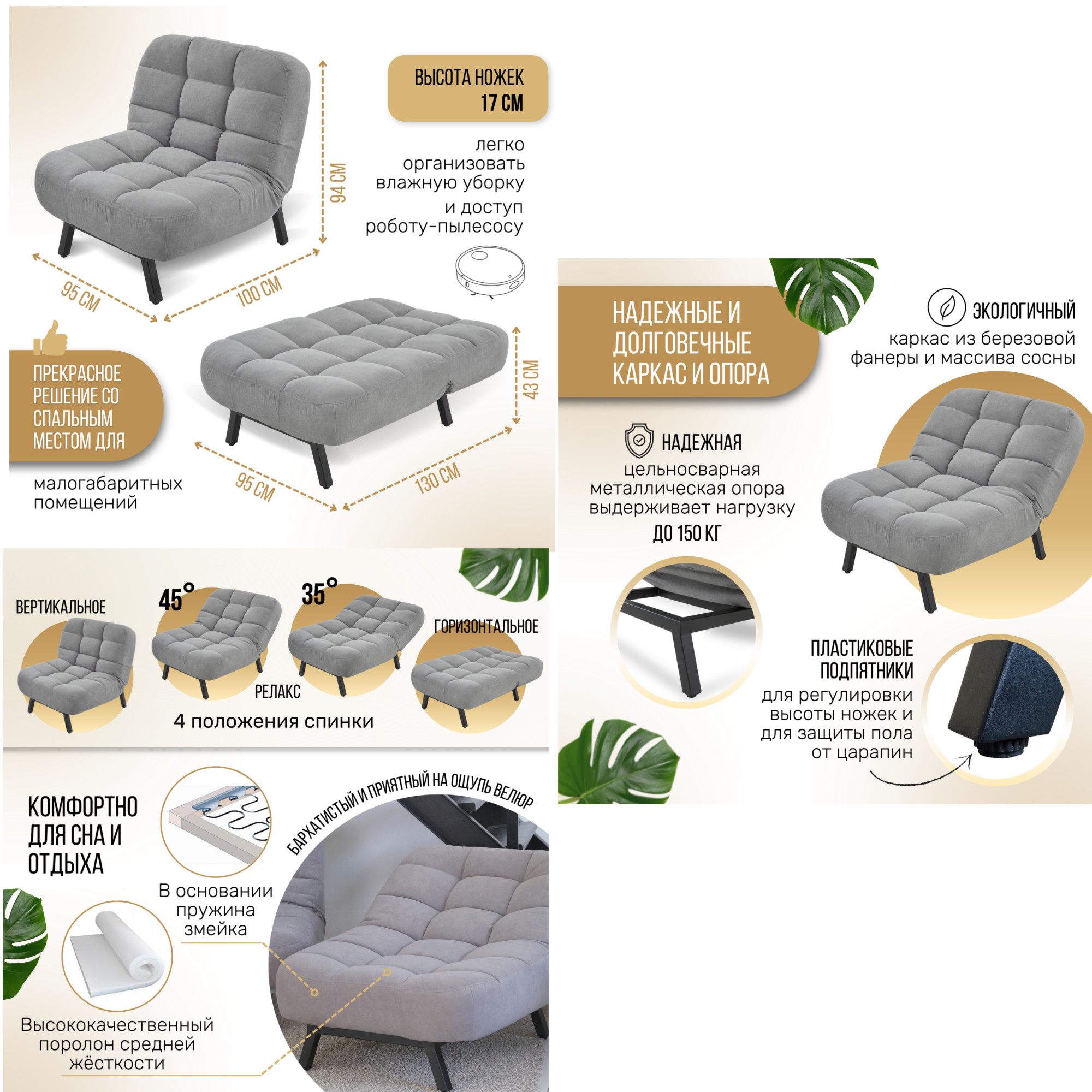 Размер спального места: 950 х1300 мм