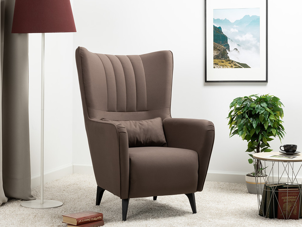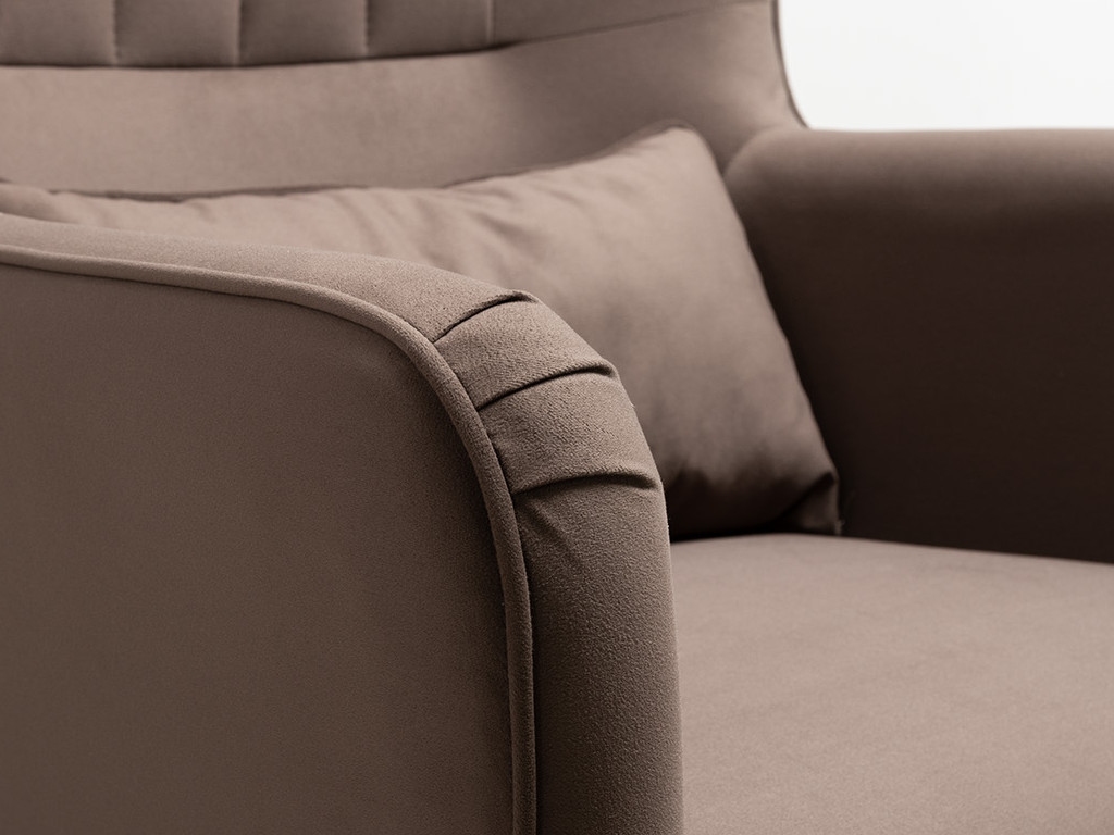 Декор: Вертикальная объемная стежка в средней части спинки; кант на спинке, подлокотниках и декоративной подушке