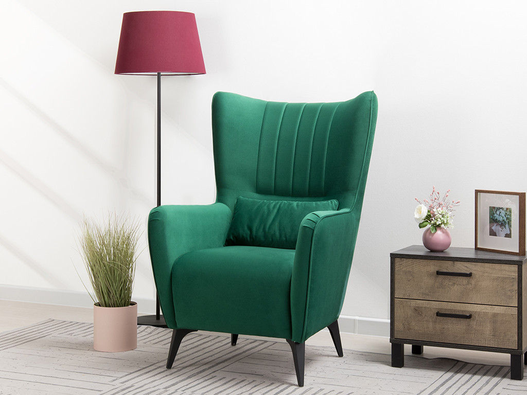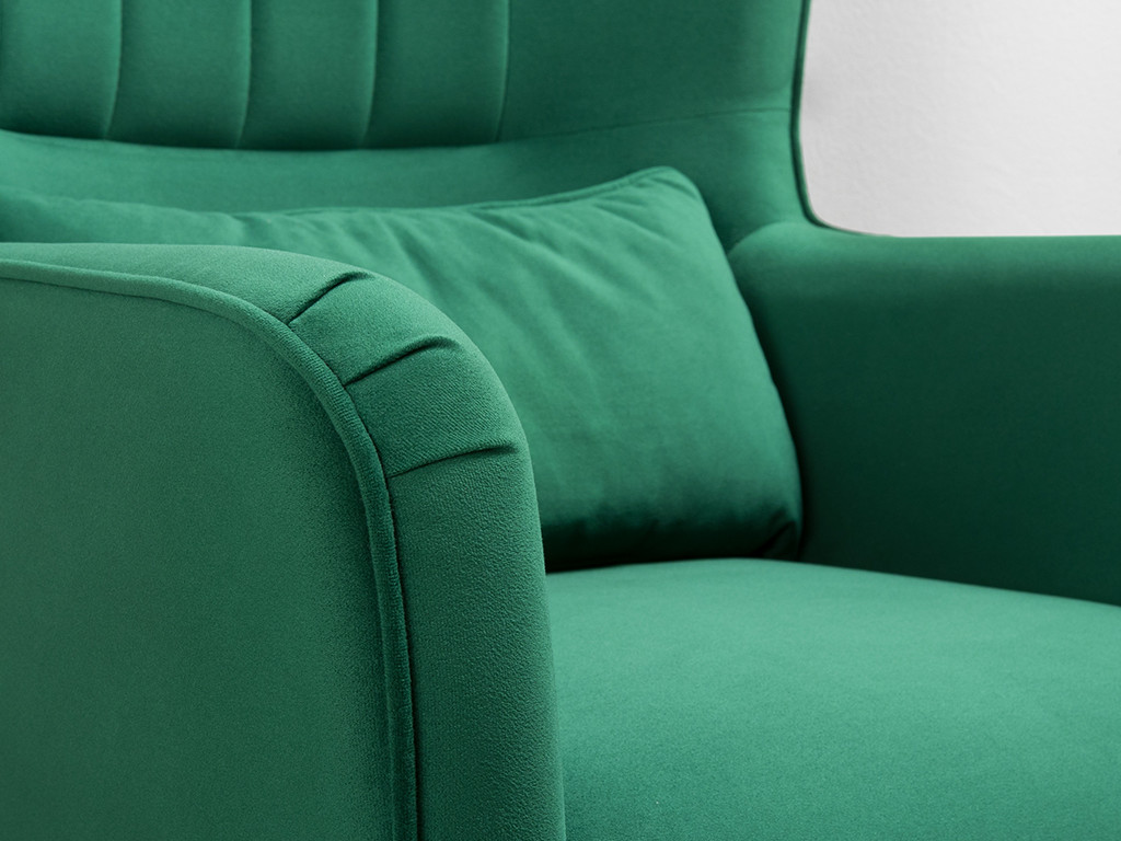 Декор: Вертикальная объемная стежка в средней части спинки; кант на спинке, подлокотниках и декоративной подушке