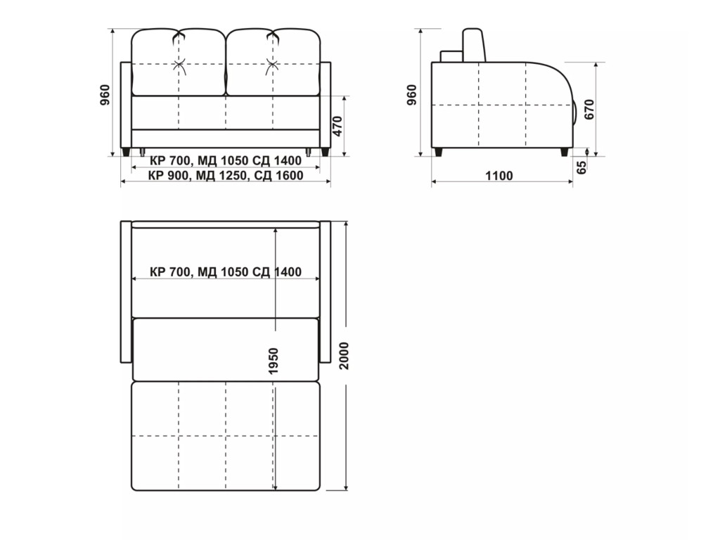 Размеры дивана (мм): 900х1100х960