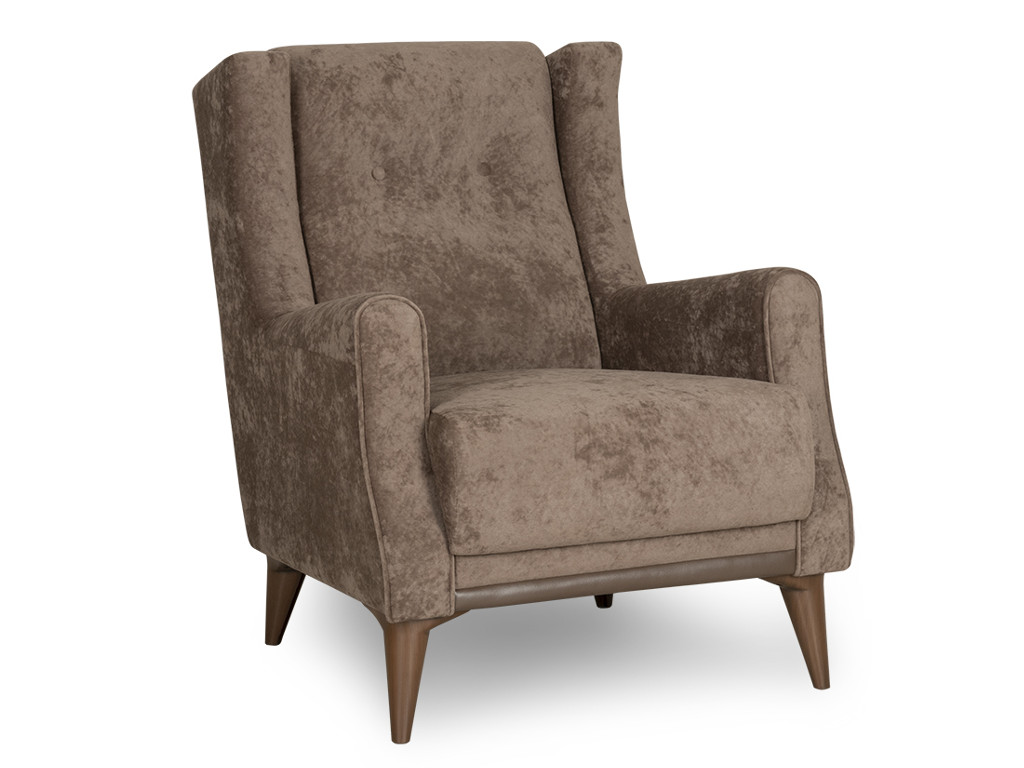 Декор: Декоративный кант из основной ткани по переднему торцу подлокотника; Утяжка спинки на 2 декоративные пуговицы из основного материала; Декоративный элемент царги из материала-компаньона.