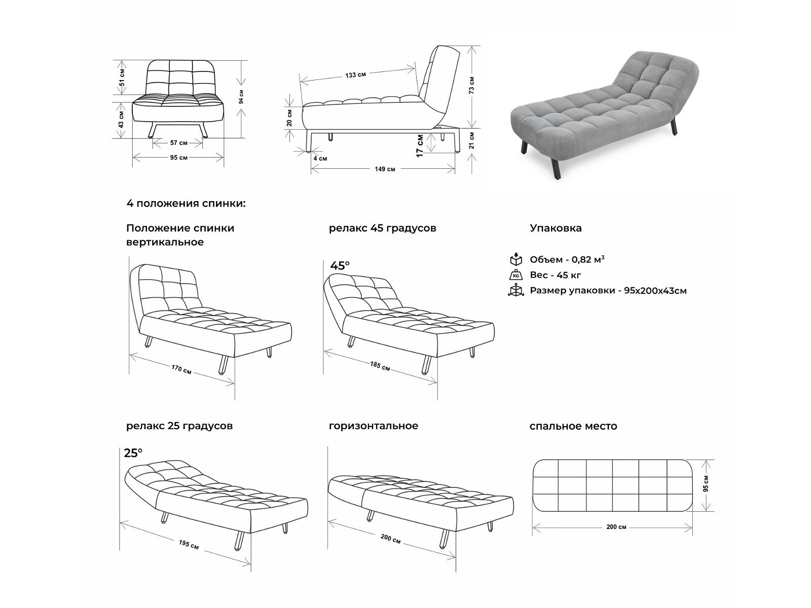 Механизм трансформации: 4 положения спинки