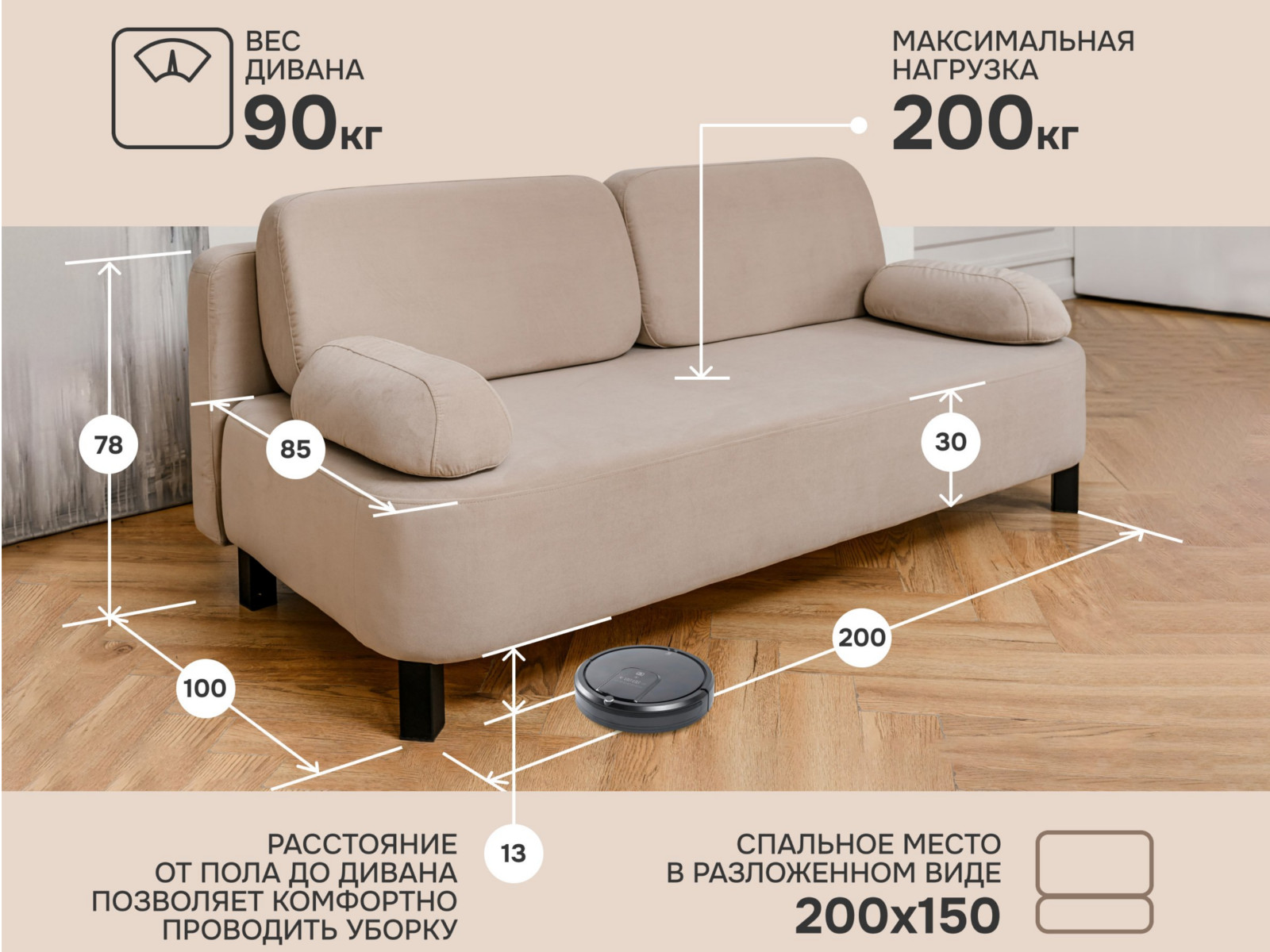 - Спальное место: 1500х2000 мм