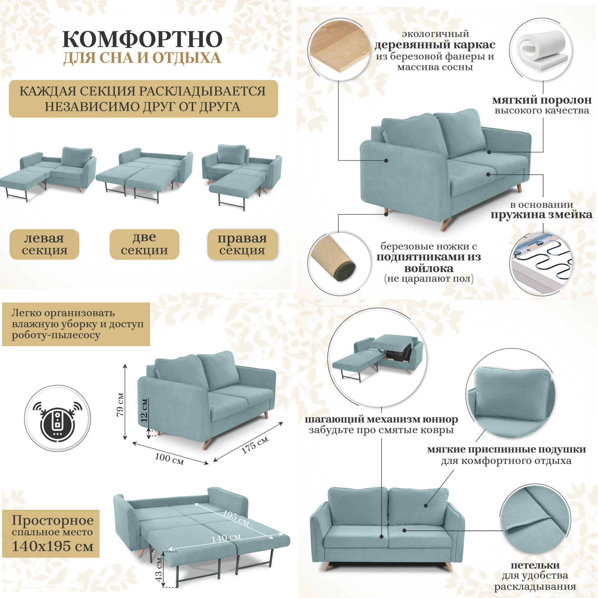 - Спальное место: 1400х1950мм