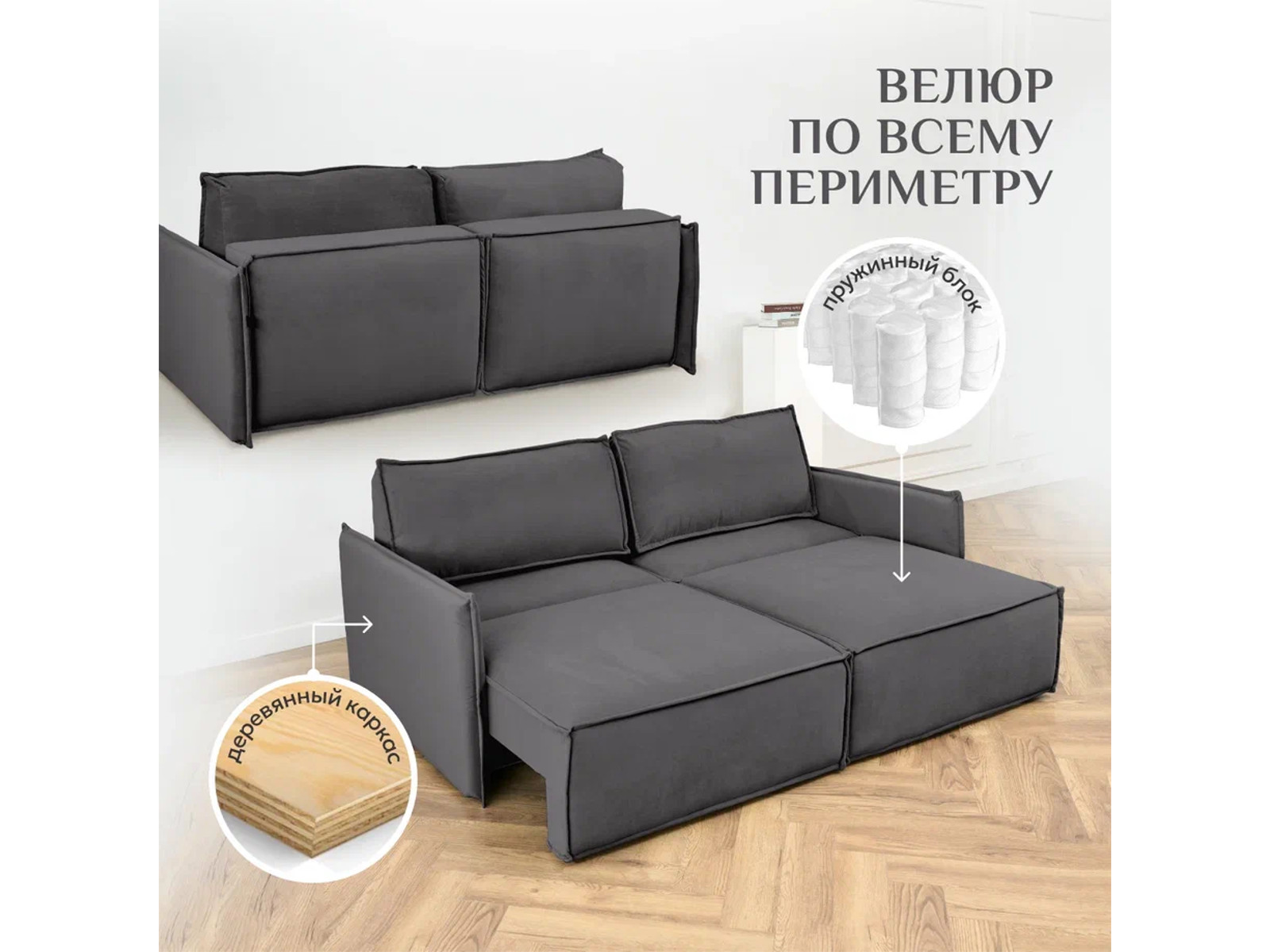 - Диван 9999 ткань Вивальди 37 графитовый