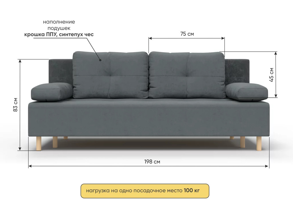 - Диван Булдым Серый Forward 995