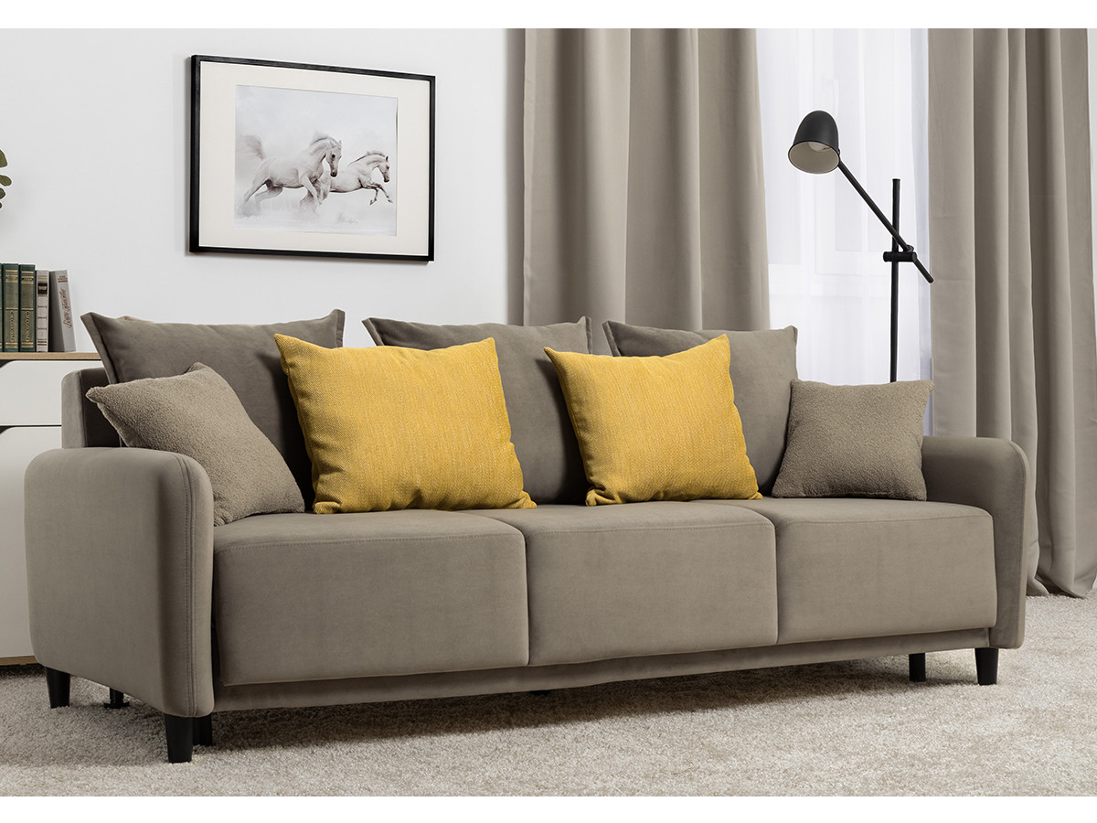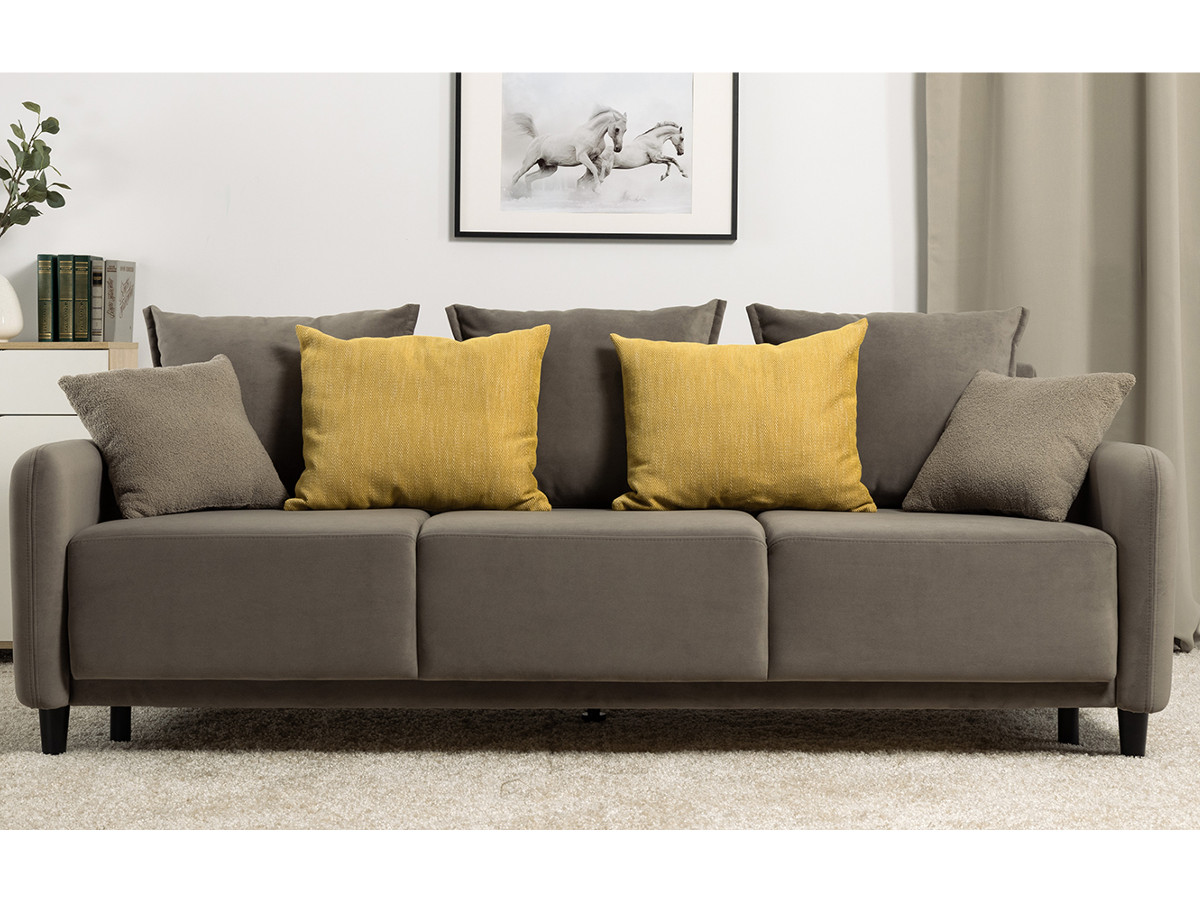 Декор: В комплекте 2 двусторонние декоративные подушки и 2 декоративные думки. Задняя спинка в ткани основы. Декоративные отделочные строчки по боковинам и сиденью