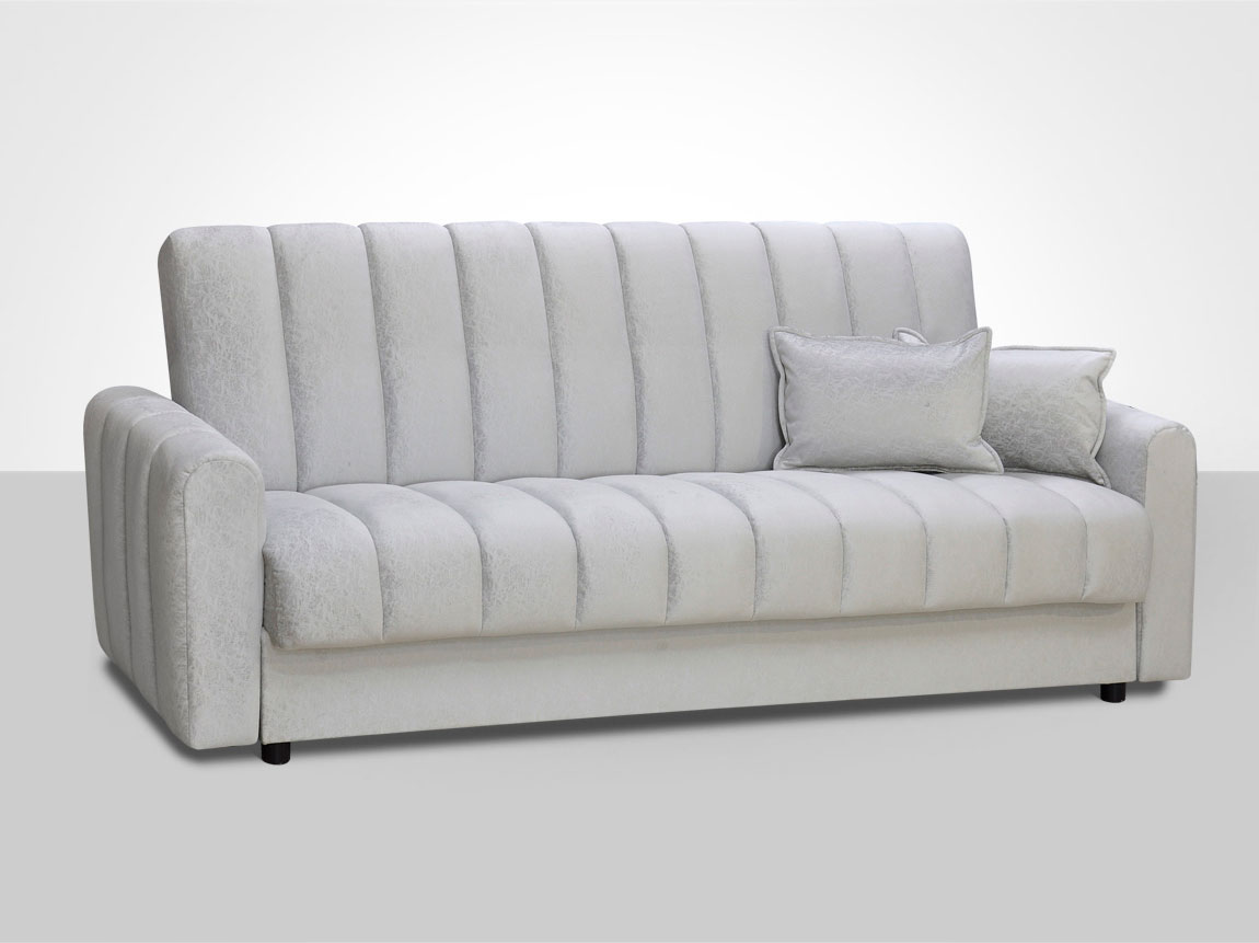 Задняя спинка дивана выполнена в основной обивочной ткани, поэтому его можно поставить даже в центре комнаты.
