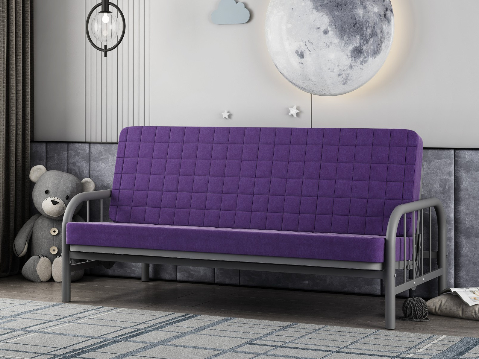 - Диван-кровать Мадлен 4 Серый-Фиолетовый