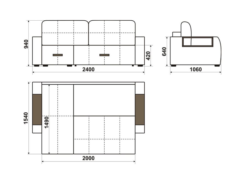 - Глубина - 1540 мм