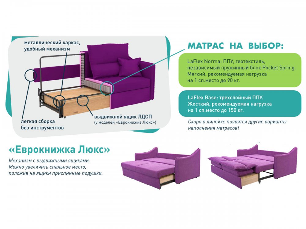 Механизм: Модель LaFlex 5 ДУ: "Еврокнижка Люкс" (выкатной ящик, оттоманка с ящиком)