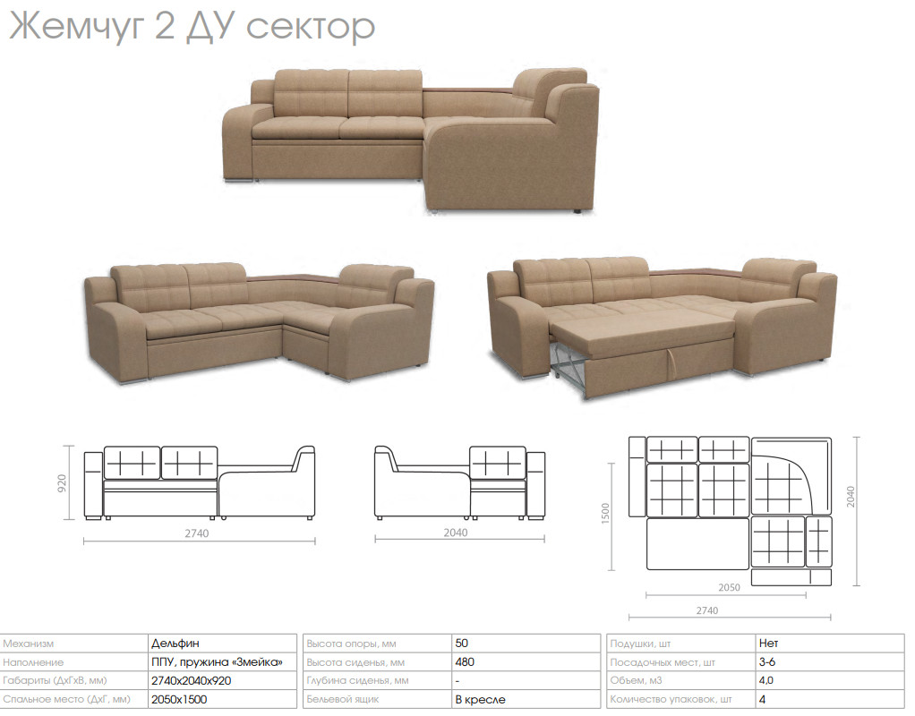 - Диван Жемчуг 2 ДУ Сектор