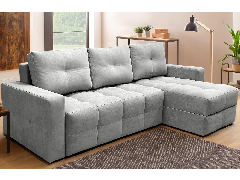 - Диван угловой Симпл Клетка Vivaldi серый велюр