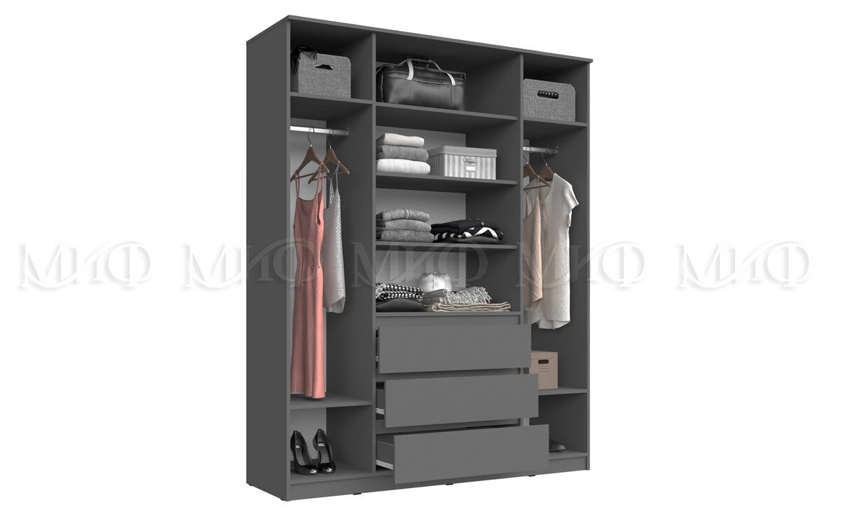 - Шкаф 1600 с антресолью Челси графит