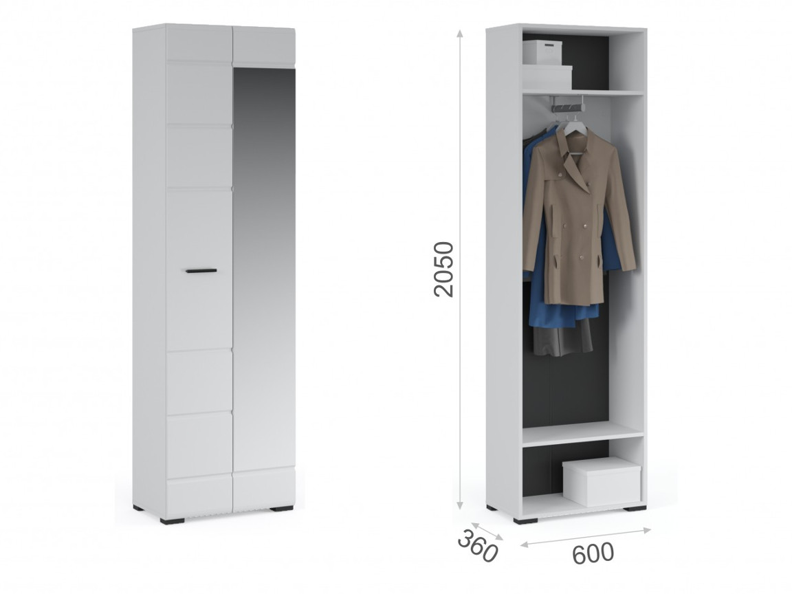 - Внутри предусмотрены секции для белья и отделение со штангой.