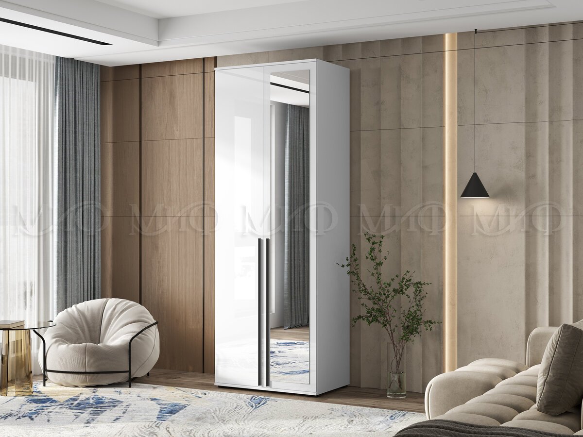 Шкаф 2-х створчатый Норд 800 с зеркалом белый глянец