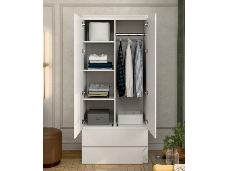 - Шкаф 2-хстворчатый с 2-мя ящиками Прайм белый