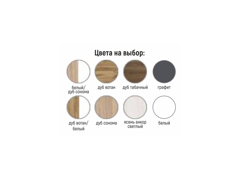 - Корпус: дуб вотан, белый, дуб сонома, дуб табачный, ясень анкор светлый, графит.