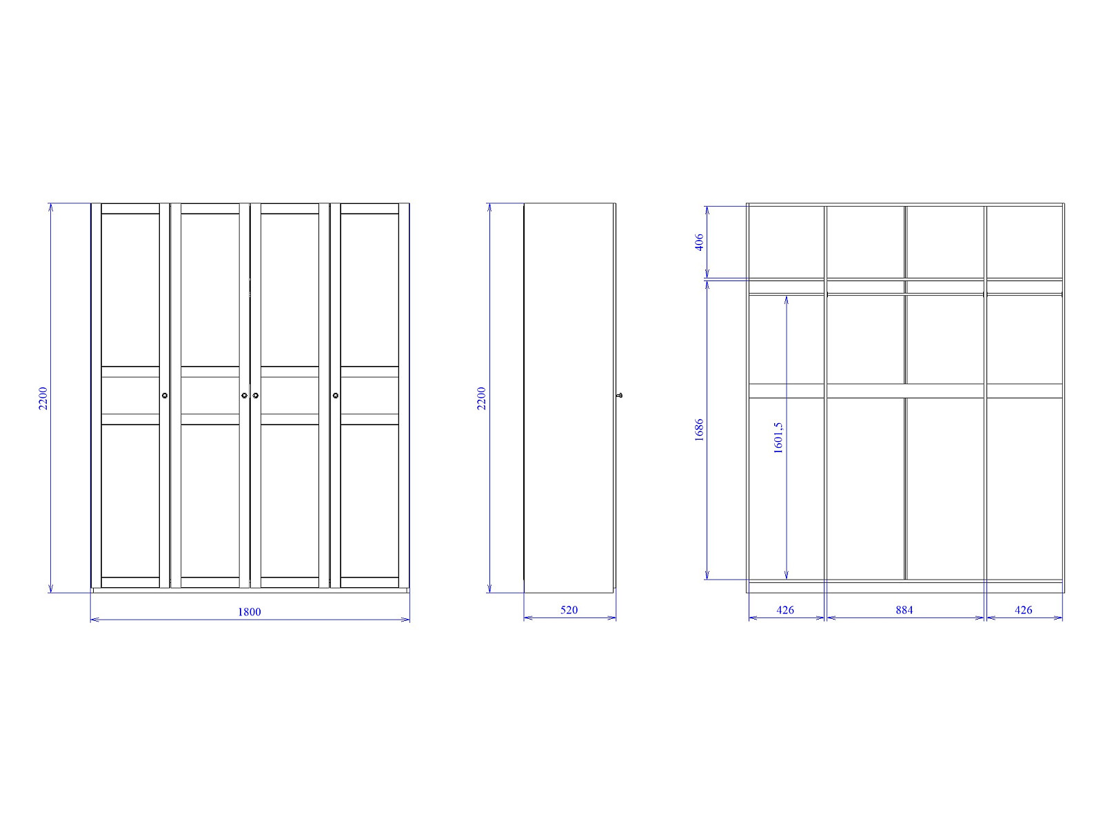 - Шкаф 4-х дверный Фрея с двумя зеркальными дверями