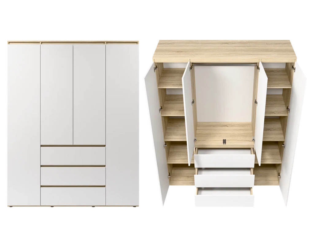 Шкаф 4-хстворчатый с 3-мя ящиками Прайм сонома/белый