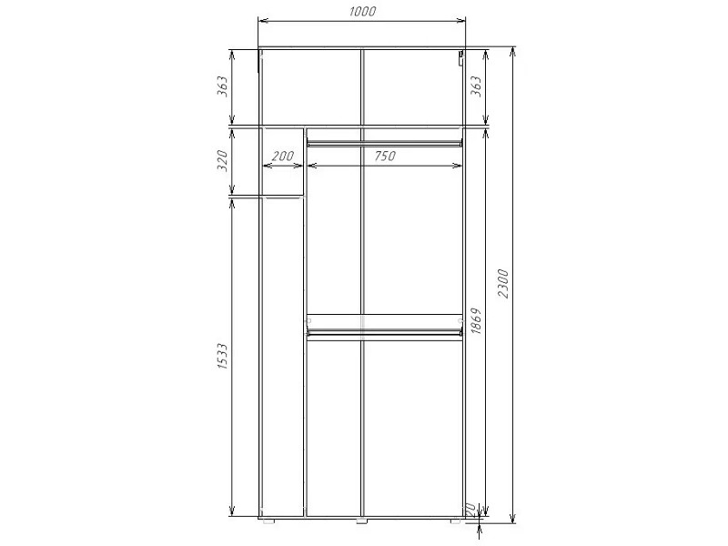 - Шкаф бытовой с 2 штангами Гранд ГШБ/2-23-10-33