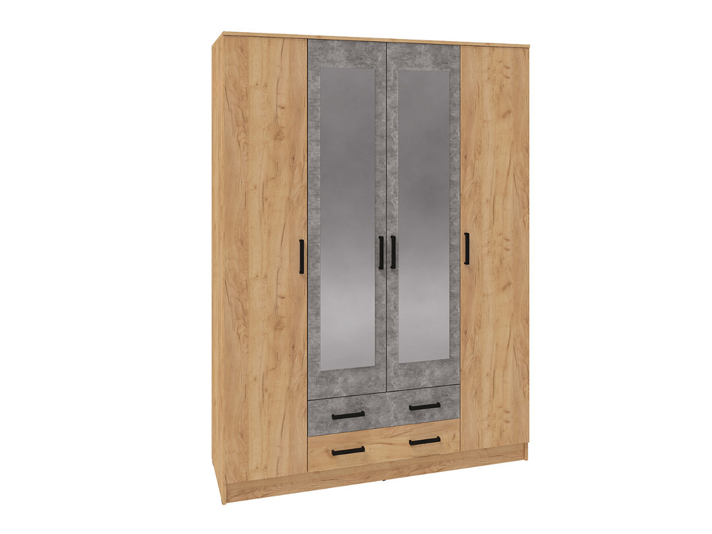 - Шкаф четырехдверный Асти дуб крафт золотой/ателье светлое