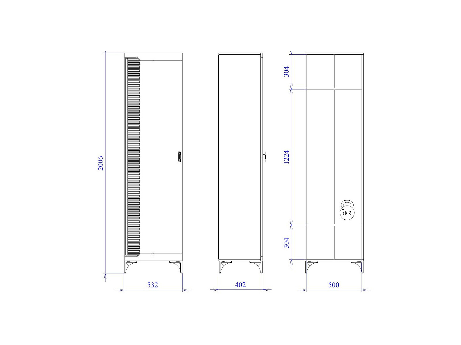 Размер ШхГхВ: 532*402*2006 мм