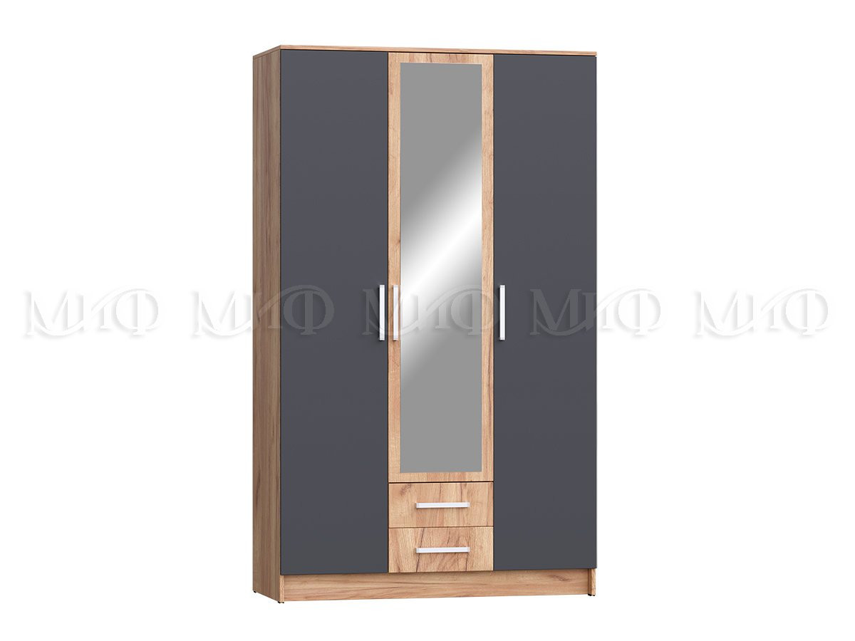 Шкаф для одежды 3-дверный Мартина Графит, Дуб крафт