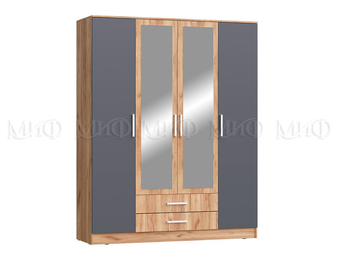 Шкаф для одежды 4-дверный Мартина Графит, Дуб крафт